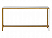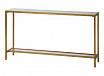 Классический и минималистичный, этот узкий консольный стол из железа отделан слегка состаренной позолотой, имеет вставку со скошенной зеркальной столешницей и полку из прозрачного стекла.